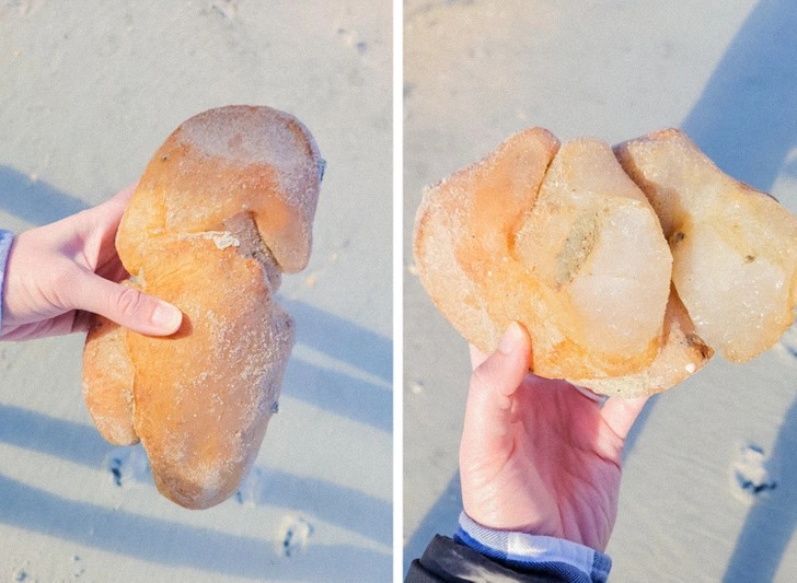 “Знайшла на пляжі після сильного шторму. Він дуже твердий і легко ламається. Здається органічним. Думаю, це великий шматок жиру”