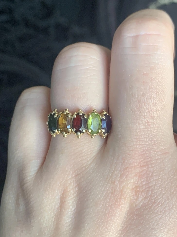 Раніше такі каблучки дарували коханим, а кожен камінь – це якесь позначення. Так що в каблучці було закодовано послання. © that_other_goat / Reddit