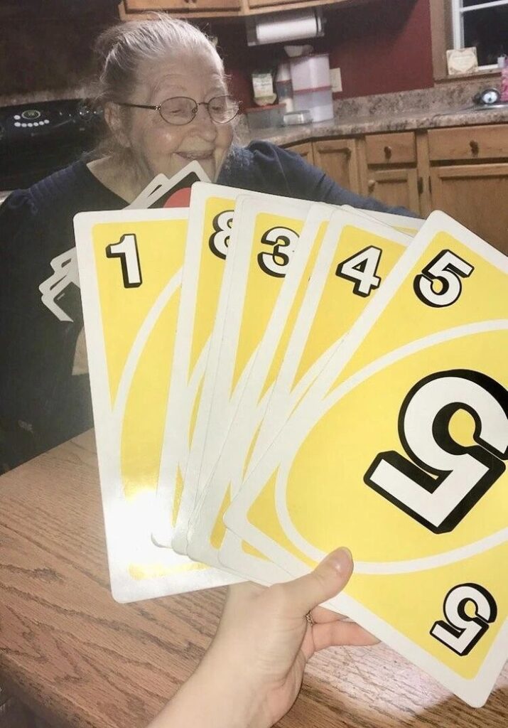 «Зір у нашої бабусі псується, а вона обожнює грати в настільні ігри. Тітка купила їй величезні Uno, щоб вона грала і далі»
