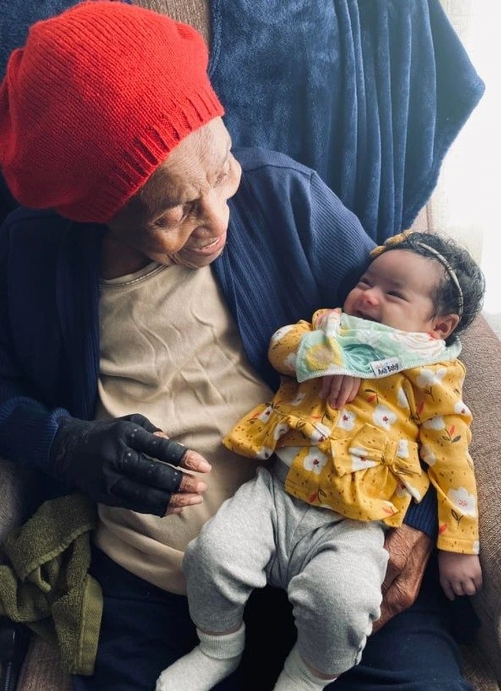 «Моя прабабуся, якій буде 103 роки в День святого Валентина, сміється разом із моєю 2-місячною донькою»