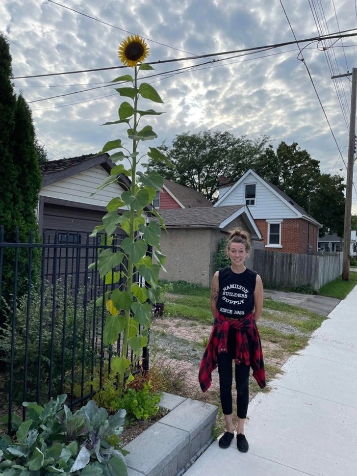 «Наткнулася сьогодні на ось такий височенний соняшник. Мій зріст – 178 см»