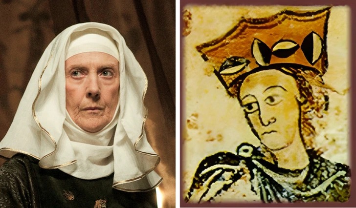 Королева Франції та Англії Алієнора Аквітанська була однією з найвпливовіших жінок свого часу. Сучасники захоплювалися красою цієї пані, один з них назвав її «благочестивим і прекрасним втіленням чарівності», особливо наголосивши при цьому на очах і благородному обличчі Алієнори. У фільмі «Робін Гуд» (2010) її зіграла Айлін Еткінс.