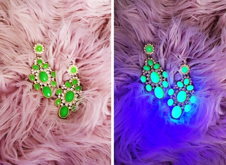 «Зауважила, що колір цих вінтажних сережок дивно відображається в камері, тому я використала ультрафіолетову лампу. І ось що сталося»