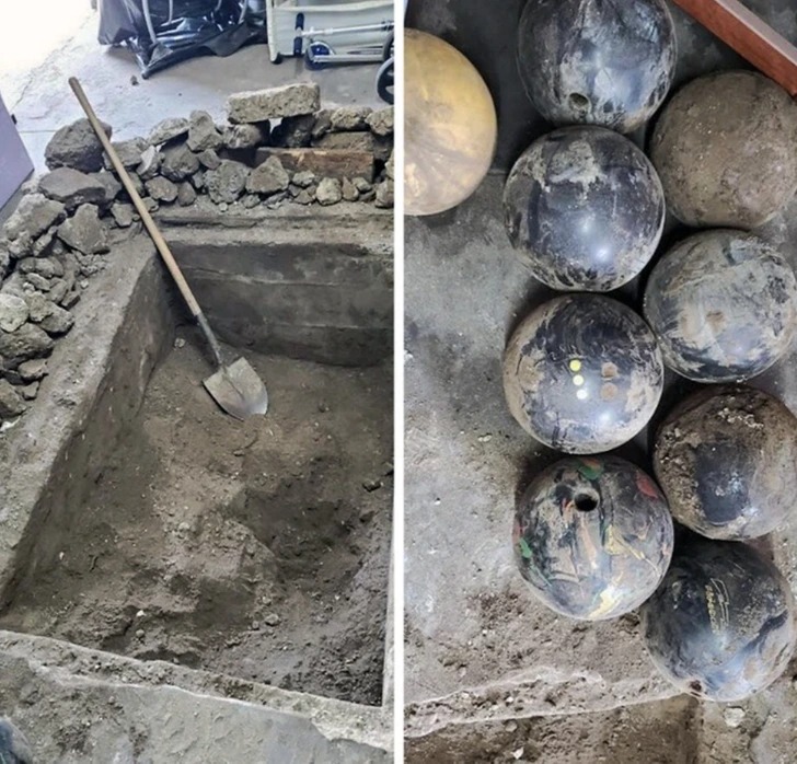 «Моя подруга з чоловіком вирішили спорудити льох у підвалі свого будинку. Під час розкопок вони знайшли це – купу куль для боулінгу»