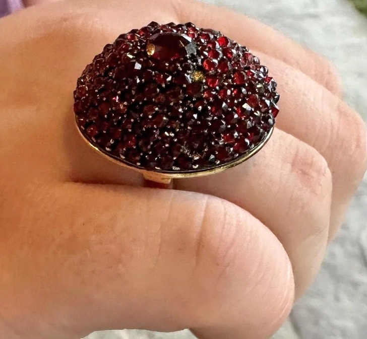 «Каблучка належала моїй двоюрідній прабабусі, її дочка подарувала її мені, оскільки гранат – мій камінь за знаком зодіаку. Яка ж вона красива»