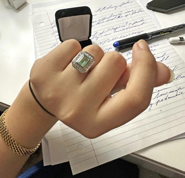 «Каблучку було подаровано моїй бабусі в 1959 році її батьками на честь закінчення університету за спеціальністю «хімія»»