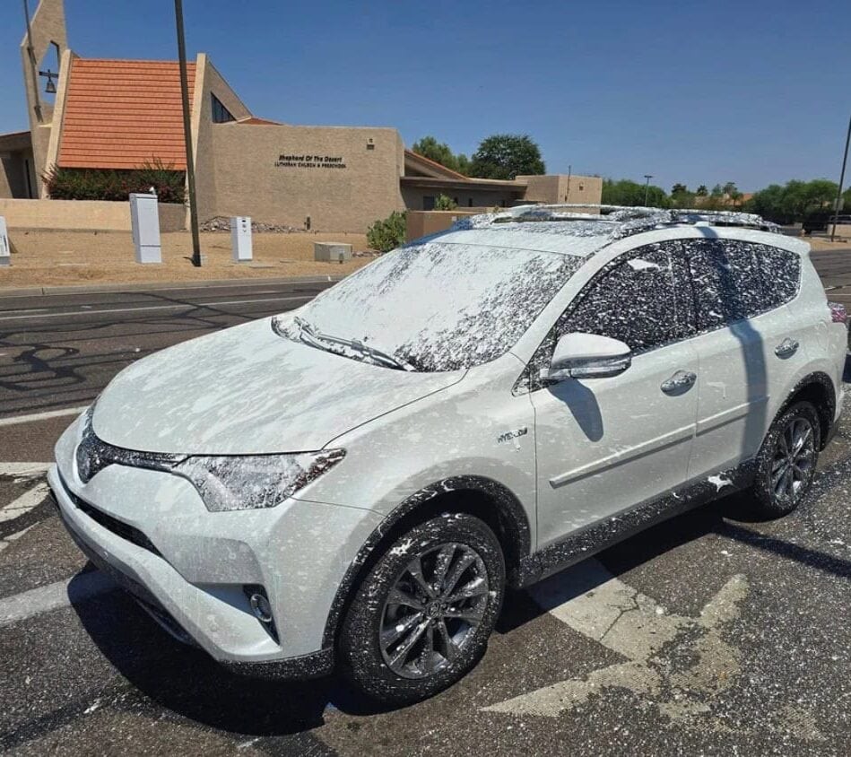 Це фарба? Я подумав, що птахи затамували злобу на цього хлопця.