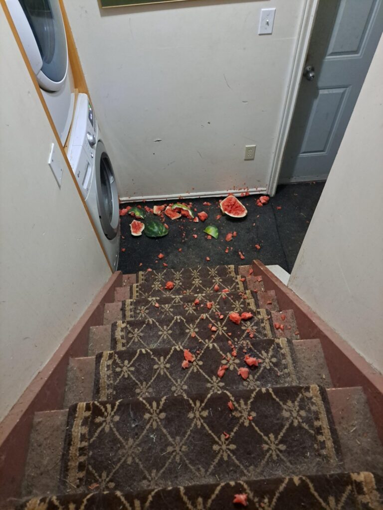 Кавун викотився, коли я переставляв холодильник. Я думав, що встигну схопити його, але він покотився по сходах…