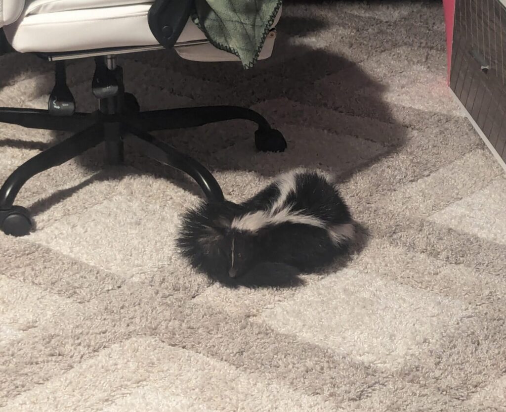 Я думаю, він увійшов через двері для собак. Здавалося, його зовсім не хвилювали мої панічні крики, і він просто згорнувся калачиком, щоб подрімати.