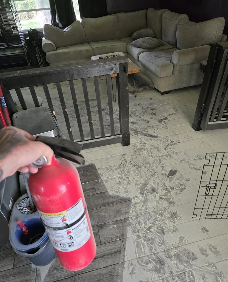 «Нове цуценя впустило порошковий вогнегасник. Порошок скрізь. Доброго ранку!»