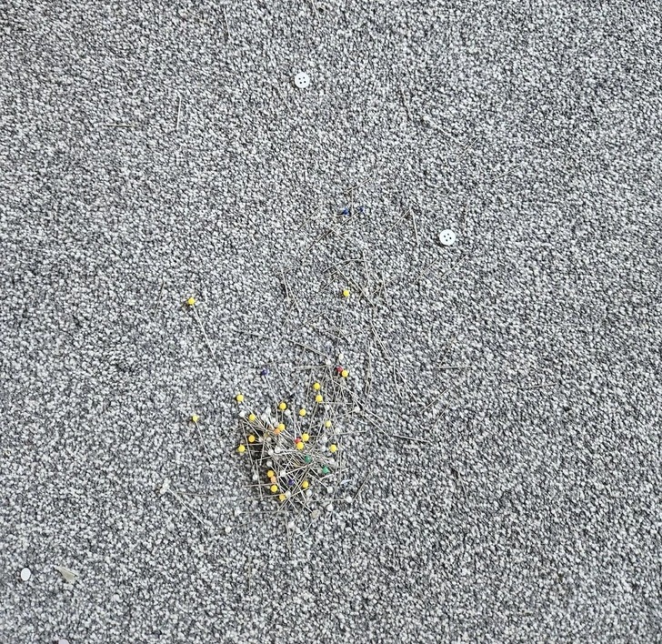 «Впустила коробку зі шпильками на свій сірий килим. Не у всіх шпильок жовті голівки»