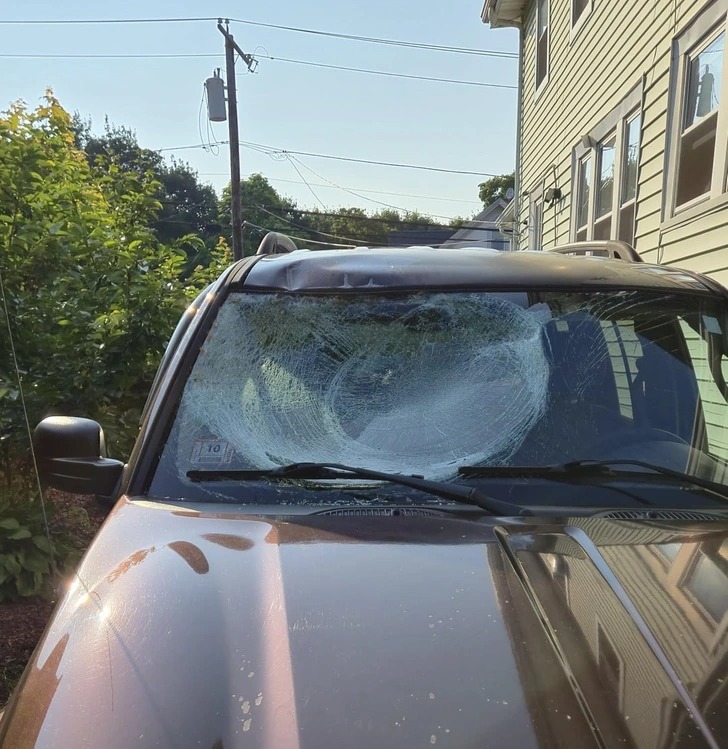 «Моя мама зупинилася, щоб не збити оленя, і ось як він їй віддячив. Замість того, щоб обійти машину, він стрибнув на лобове скло!»