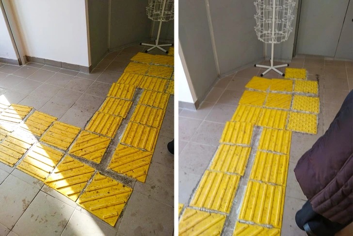Ось так поклали плитку для слабозорих у відділенні пошти