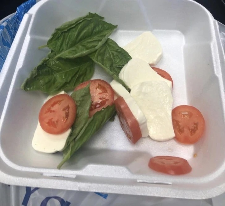 «Салат «Капрезе», який я придбав у піцерії. Мабуть, варто було спочатку прочитати відгуки»