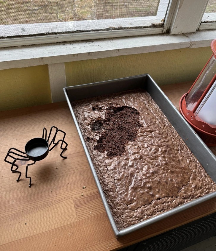 «Спекла шоколадний пиріг і поставила його остигати на ґанок. Білка пробралася всередину і все зіпсувала. Мені дуже сумно»