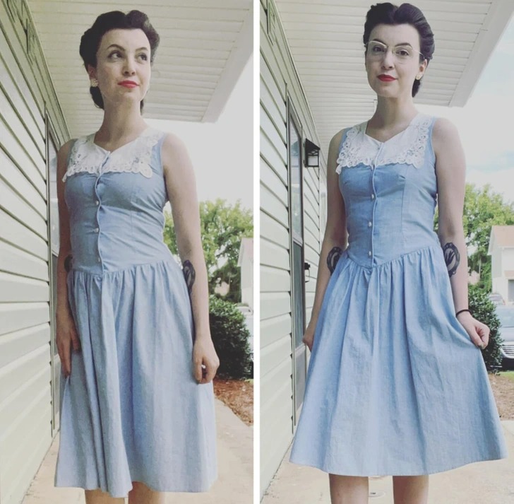 «Довго шукала ідеальну вінтажну сукню 30-х чи 40-х років, і ось вона — з омрієним комірцем!»
